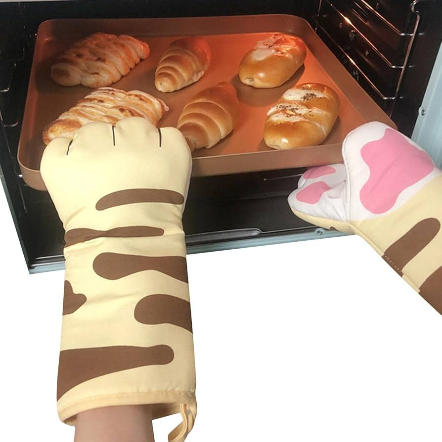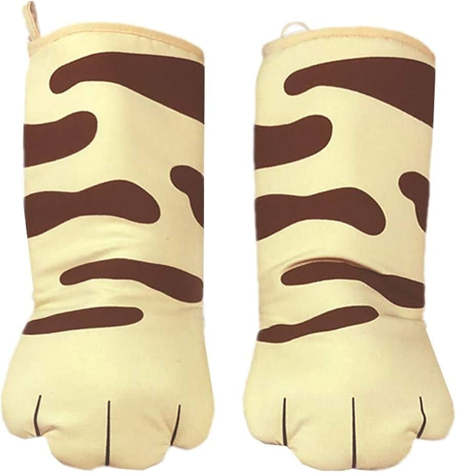 Manoplas para evitar quemaduras al manipular el horno o cualquier recipiente introducido en el, con forma evidentemente de patas de gatos